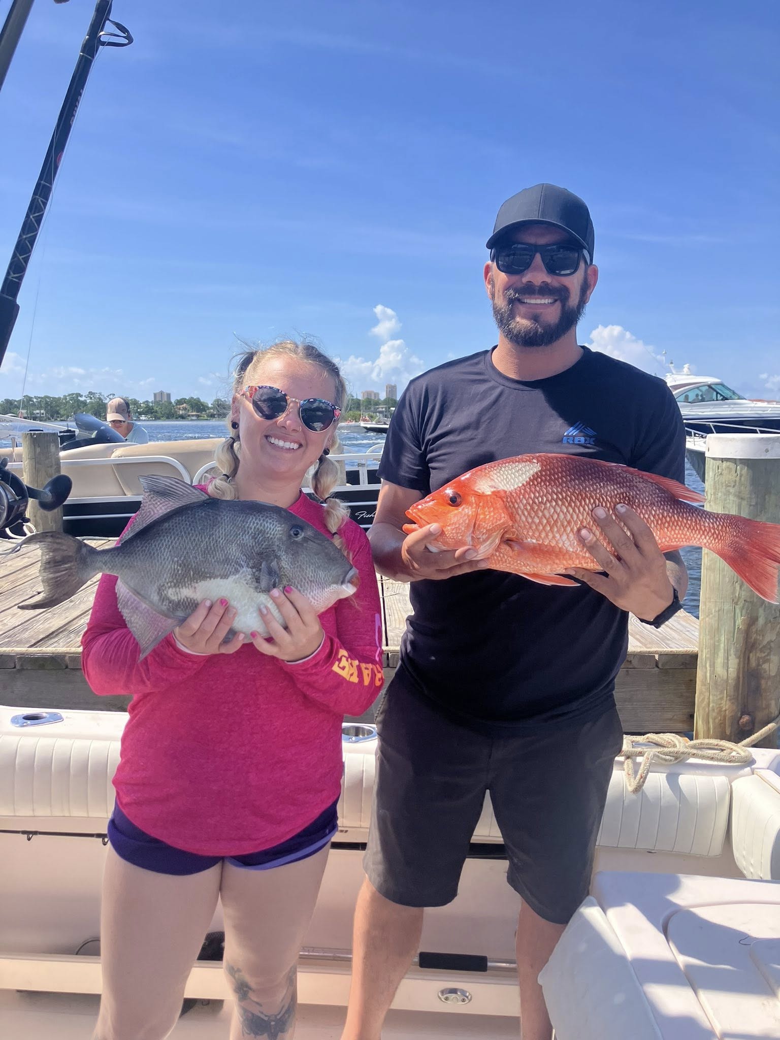 Snapper, Trigger & AJ -before and after!! AJ was returned to the Gulf of America (not in season)